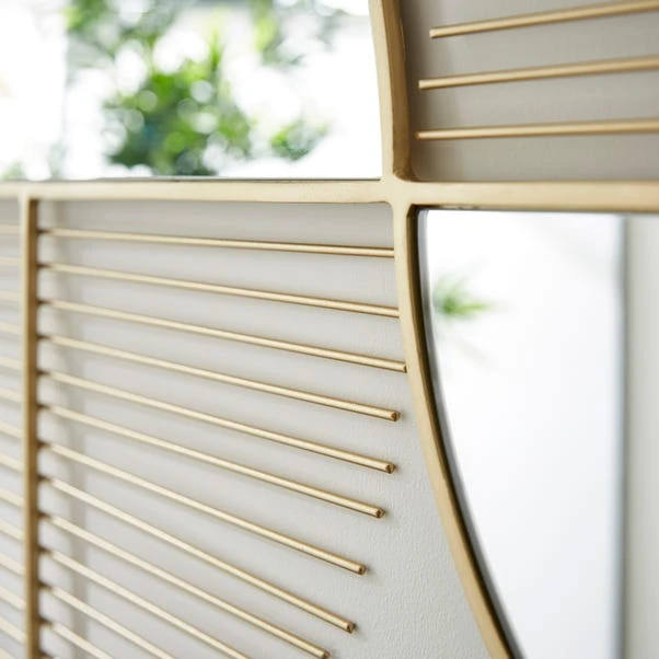 Suitable for both indoor and outdoor use, this contemporary piece of wall art features a unique semi-circle mirror design that will elevate any space within which its hung. With the option to hang both vertically and horizontally, there are multiple ways the Elements Indoor Outdoor Wall Art can be incorporated into your home.